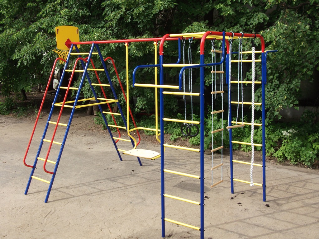 - Дополнительное навесное оборудование: лестница веревочная, трапеция, щит баскетбольный, сетка для лазания.