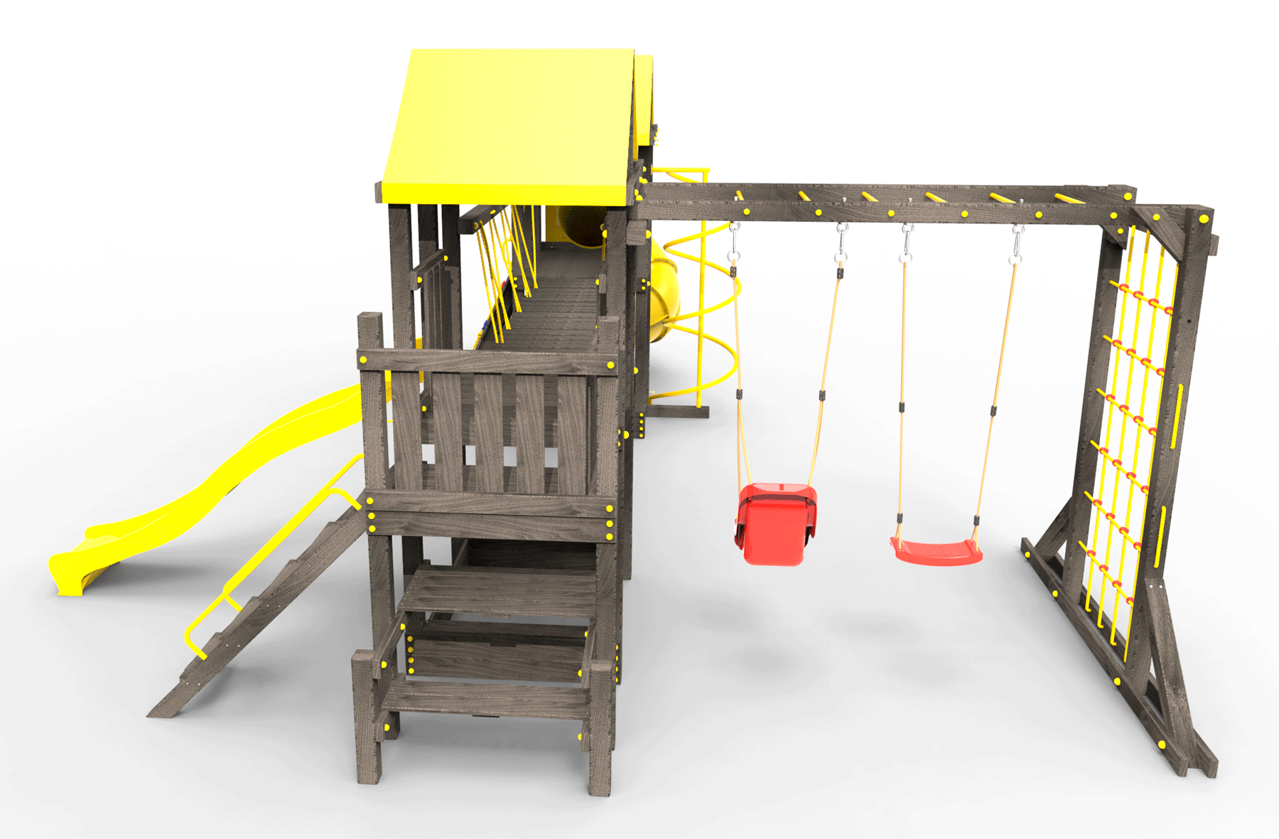 Обращаем Ваше внимание, что фактический цвет детской площадки может отличаться от представленных фото на сайте. Специфика окраски нетоксичными пропитками и красителями допускает отклонения в цветовой гамме отгружаемых изделий. Также обратите внимание, что фактический цвет может отличаться из-за цветопередачи устройства на котором Вы смотрите фото.