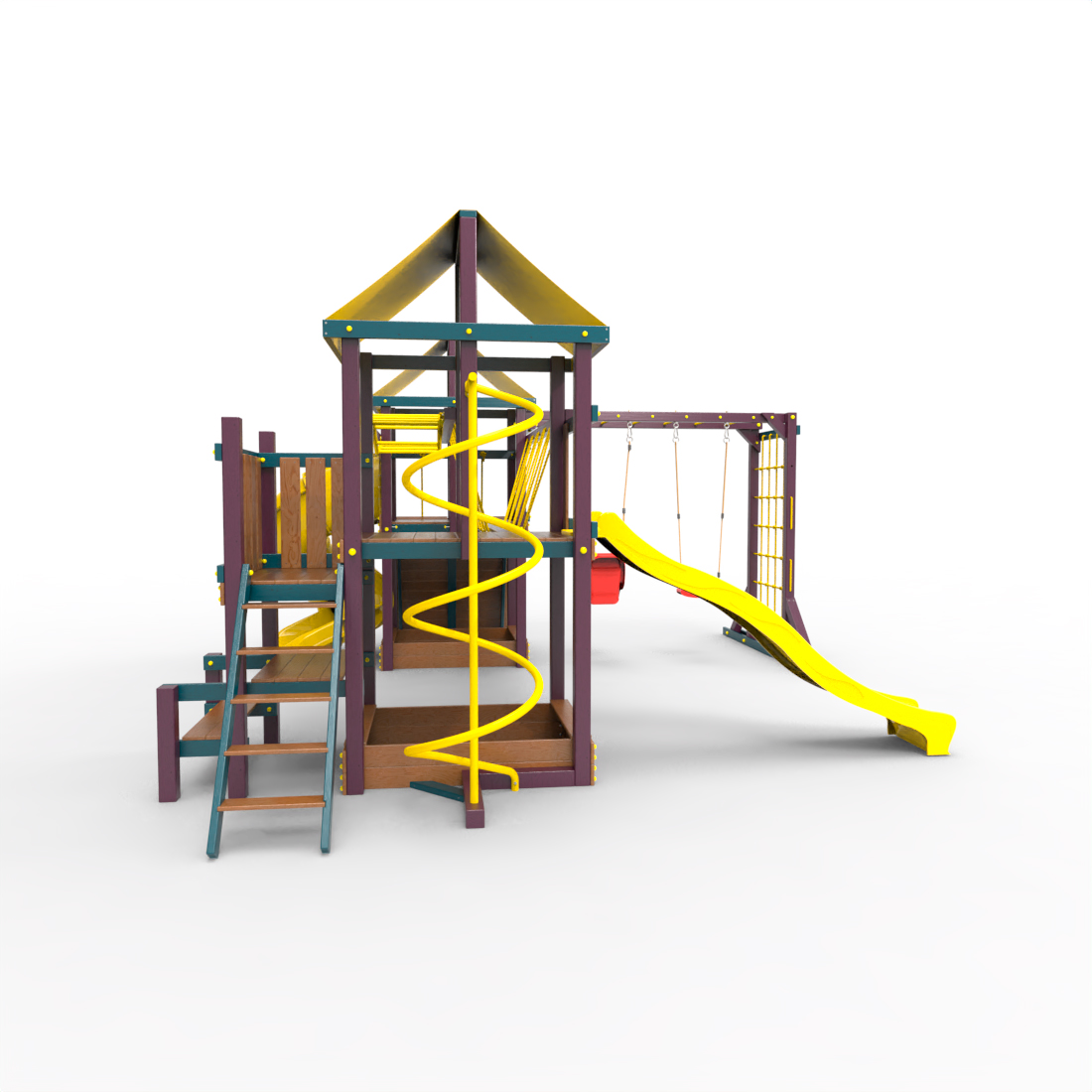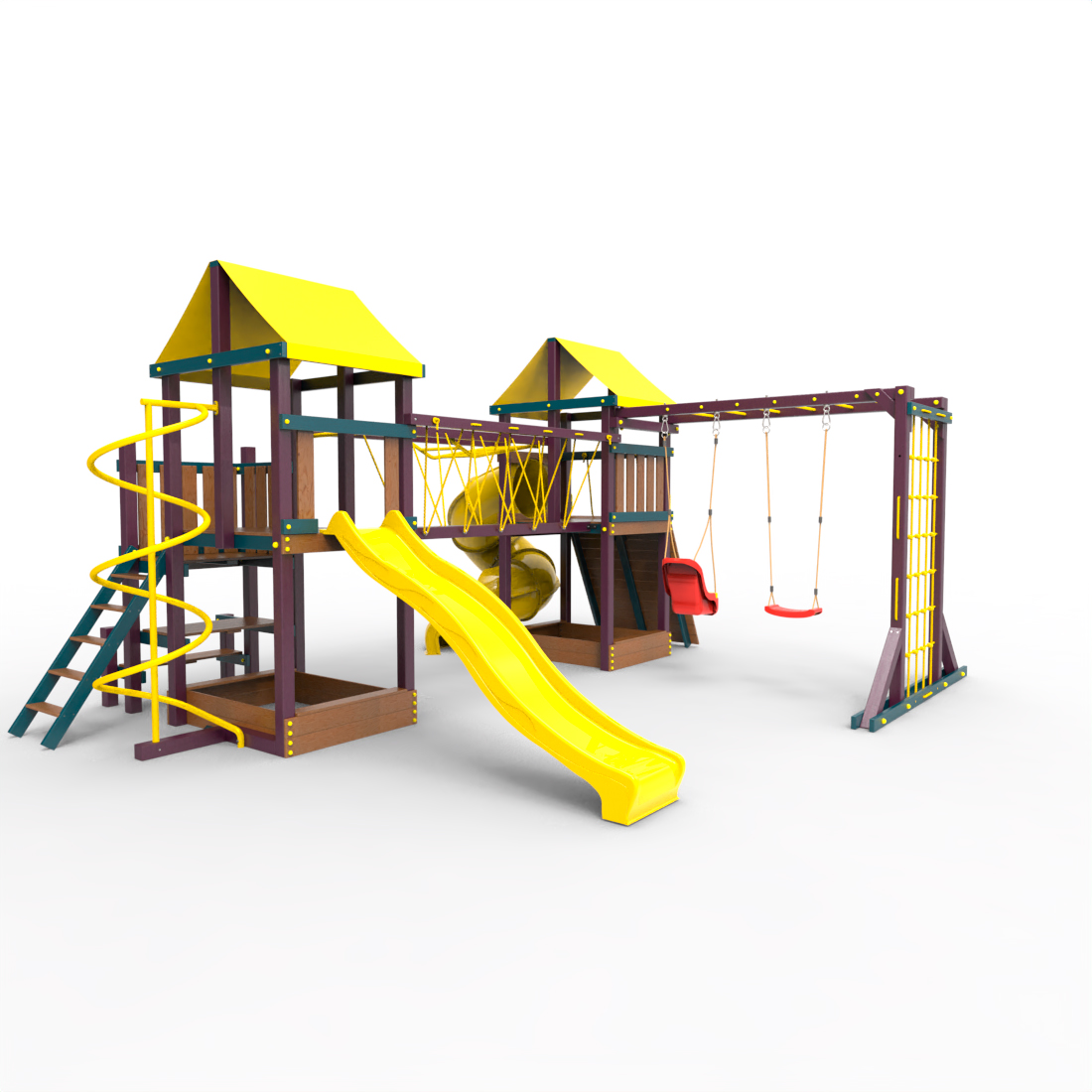 | Комплектация | Два домика|Песочница|Лестница|Шторм-трап|Скалодром|Рукоход|Руфер|Балкон|Столик с лавочками|Подвесной мост|Горка|Спираль|Сеть для лазания|Качели|Заливная горка|ЗигЗаг|Переправа |